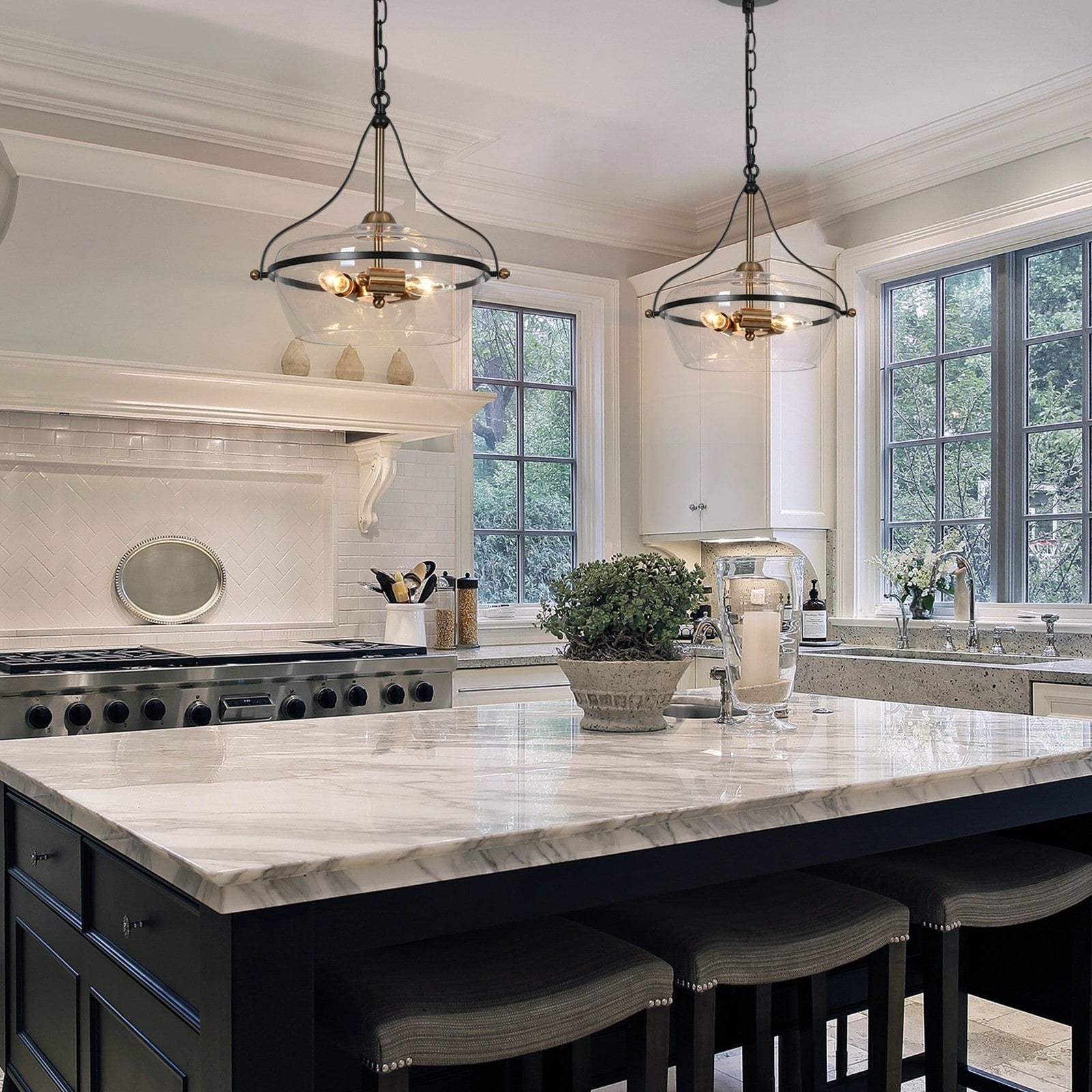 Lustre Zelena moderne de style ferme noir et or, suspension en verre à 3 lumières pour îlot de cuisine et salle à manger